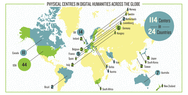Of course, initiatives such as CenterNet, ADHO (Alliance of Digital Humanities Organizations10), and CHAIN (Coalition of Humanities and Arts Infrastructures and Networks) have the merit of gathering and registering the major realities of the Anglophone axis (USA–Canada–U.K.–Australia), but this is just a self-strengthening operation of existing identities rather than actual knowledge sharing or exploration of other cultures, methodologies, or practices.